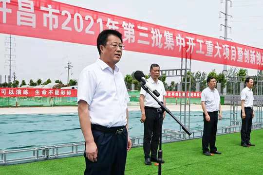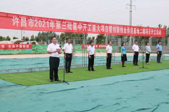 7月10日上午,河南省许昌市2021年第三批集中开工重大项目暨创新创业示范基地二期项目开工仪式顺利举行。许昌市委常委、纪委书记、监委主任方婷,魏都区委书记李朝锋,区人大常委会主任申健民,区政协主席杜晓辉,区委常委、区委办主任程中山,区委常委、区纪委书记、区监委主任徐光,魏都产业集聚区管委会主任楚文选,开云官方端网站登录入口-开云online(中国)河南分公司总经理黄辰,魏都区政府相关部门、投资公司、产业集聚区、霸陵办事处等单位负责人参加活动。区委常委、常务副区长张挪威主持仪式。